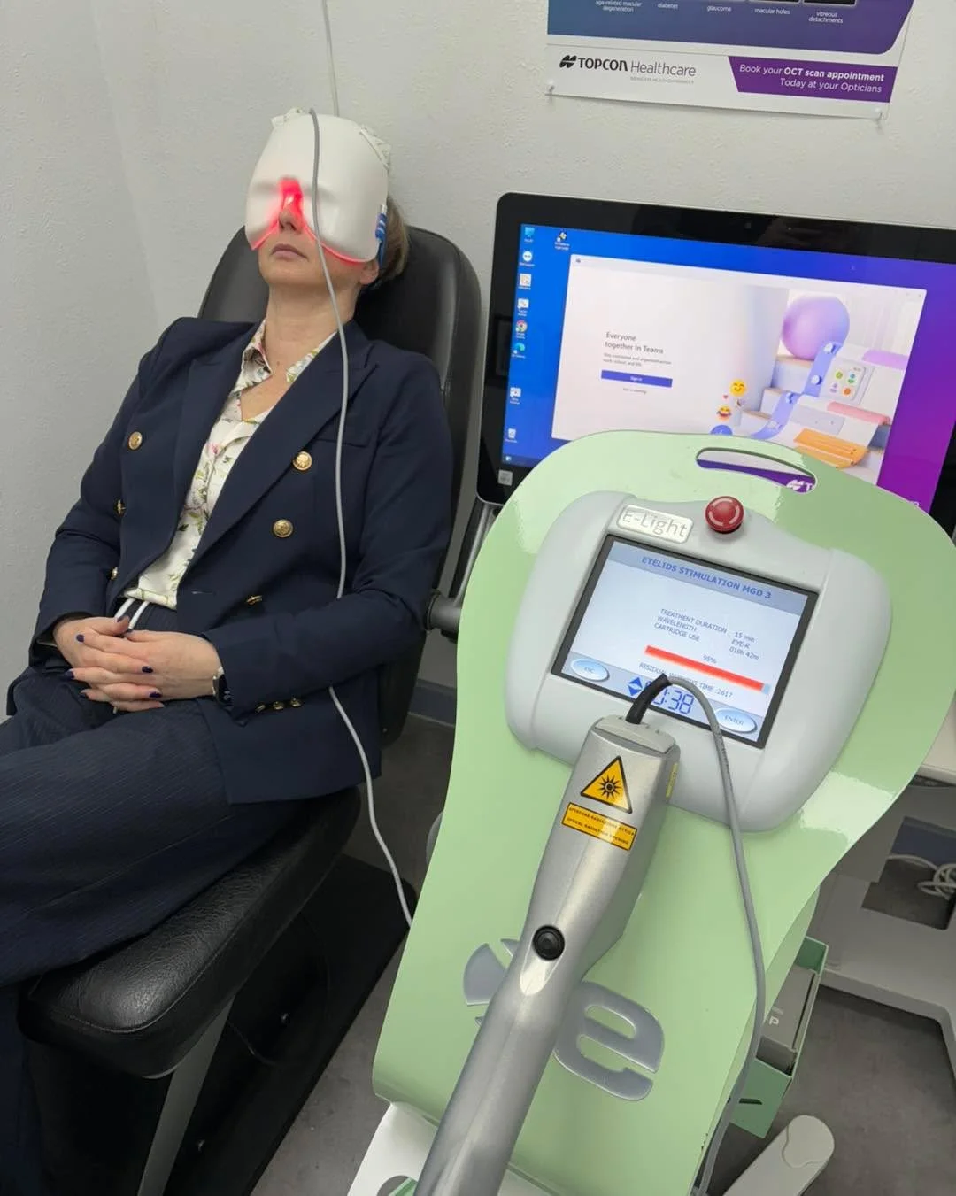 LLLT uses specially designed LED lights to gently warm up the eyelids, causing the meibomian glands to unclog and release oils needed to keep eyes healthy, moisturised and comfortable.